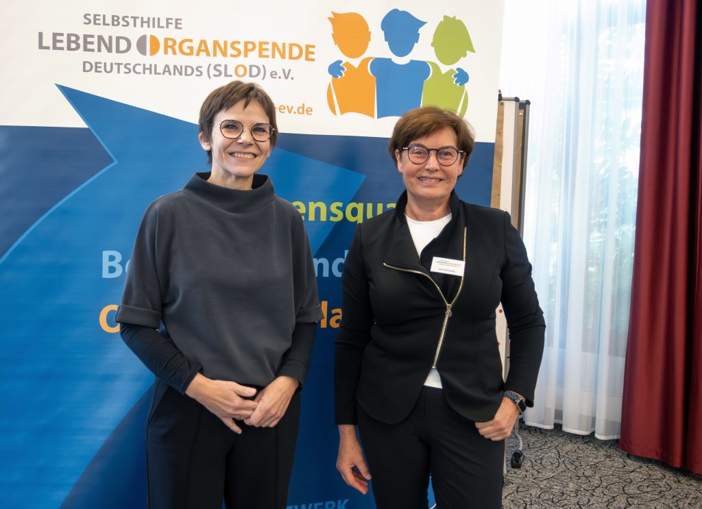 Beim diesjährigen SLOD-Symposium am 18./19. Oktober kamen in Erfurt rund 50 Betroffene mit Ärzt:innen und weiteren Expert:innen zusammen. Im Mittelpunkt des Austausches standen dabei die persönlichen Fragen der „neuen“ Teilnehmer:innen und die teils langjährigen Erfahrungen anderer mit der Lebendnierenspende. Gerade diese unmittelbare Möglichkeit des Gespräches zwischen Menschen, die vor oder im Prozess der Entscheidung für eine Lebendorganspende stehen, und jenen, die aus ihrer ganz persönlichen Erfahrung über die Jahre hinweg berichten können, macht das SLOD-Symposium so wertvoll und einzigartig für alle Teilnehmer:innen. So hat etwa ein Schwesternpaar in den letzten Jahren am Symposium teilgenommen und ganz wichtige Informationen und Impulse für die eigene Entscheidung bekommen, bevor dann ein „Ja“ für den Schritt zur Lebendorganspende entstanden ist. In diesem Jahr konnten beide nun selbst auf erste Erfahrungen zurückblicken und die Runde daran teilhaben lassen.